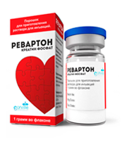 Кардиозащитное, мембраностабилизирующее, антиаритмическое, метаболическое. Креатин фосфат является эндогенной физиологически активной субстанцией, широко распространенной в различных тканях организма, а особенно в миокарде. Высокоэнергетическая связь фосфорной кислоты, содержащаяся в молекуле креатин фосфата, может обеспечивать миокард энергией. Экзогенный креатин фосфат поддерживает внутриклеточное содержание фосфорилирующих соединений, являющихся источником энергии в клетке, на нормальном уровне. Этот препарат может увеличивать синтез АТФ путем подавления активности 5'- нуклеотидазы и стабилизировать клеточную мембрану путем ингибирования фосфолипидазы. Таким образом защищая клетки от повреждений, вызванных свободными радикалами. Во время ишемической реперфузии креатин фосфат активизирует энергозависимый медленный кальциевый канал и увеличивает медленный приток кальция, понижает максимальную скорость деполяризации, что опосредует его антиаритмический эффект. Креатин фосфат является высокоэффективным и низкотоксичным кардиозащитным средством, которое может значительно сократить зону некроза при инфаркте миокарда, уменьшает острую желудочковую аритмию и оказывает мембраностабилизирующее действие на клетки миокарда, предотвращая их ишемию. Ревартон в сочетании с обычной терапией увеличивает показатель сердечной функции и улучшает клинический статус у пациентов с хронической сердечной недостаточностью без развития побочных эффектов. Во время хирургических вмешательств на сердце эффективная защита от ишемии миокарда может быть достигнута при добавлении креатин фосфата в кардиоплегический раствор. При этом ускоряется восстановление сердечной функции, предотвращается развитие сердечной аритмии и других осложнений.